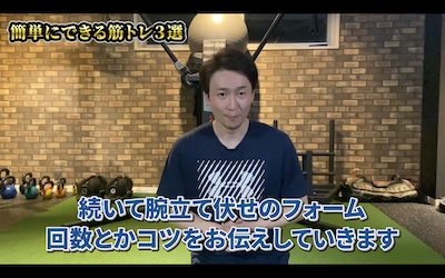 ということで、この動画では誰でも簡単にできる筋トレを3つ紹介します!