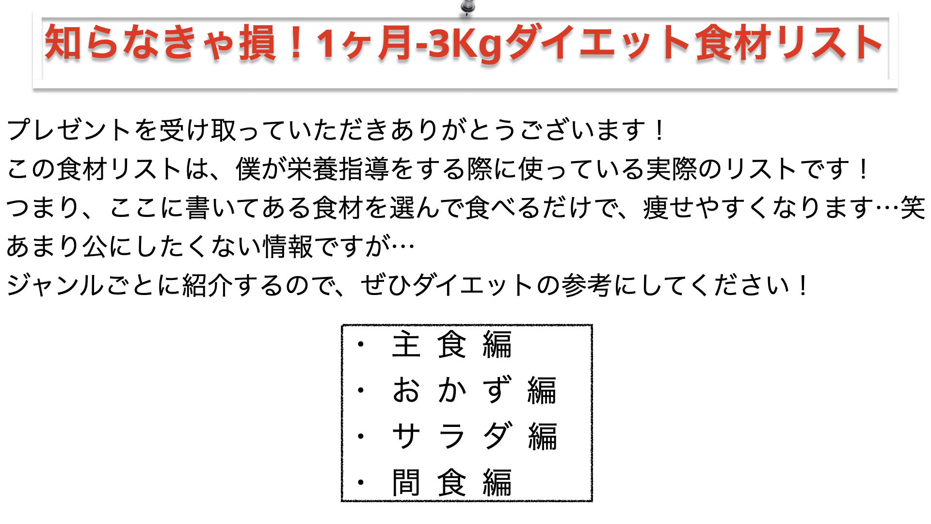 1ヶ月-3Kgダイエット食品リスト